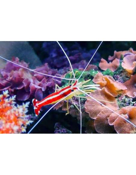 El Camarón Limpiador Skunk Escarlata (Lysmata amboinensis) actúa como el médico de cualquier acuario de agua salada. De hecho, este limpiador activo se instalará en afloramientos de roca o coral vivos y esperará a que vengan los peces y se limpien de ectoparásitos o tejido muerto. Muchos peces valoran tanto sus servicios que incluso permiten que los camarones Scarlet Skunk Cleaner se limpien el interior de sus bocas sin dañarlos.