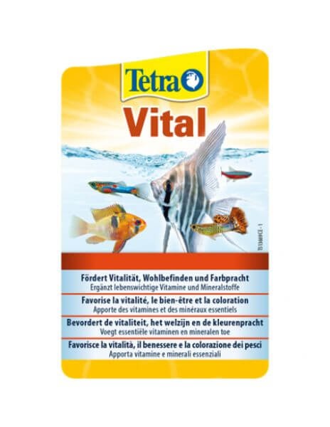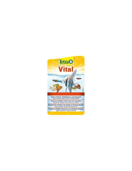 Promueve la vitalidad, el bienestar y el colorido natural de los peces. Tetra Vital aporta vitaminas, minerales y oligoelementos esenciales procedentes del hábital natural de los peces, que el agua del grifo no contiene o que con el tiempo se agotan en el acuario. De este modo se crea un entorno casi natural, en el que los peces se sienten bien y desarrollan su colorido natural con facilidad.